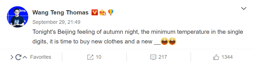 وبحسب المنشور، يقول Wang Teng أنه الوقت قد حان لشراء ملابس جديدة وشيء آخر لم يحدده، لكن عادة ما ترتبط عطلة نوفمبر بشراء ملابس جديدة. وبالتالي تشير التوقعات بأن سلسلة Redmi Note 10 ستصل قبل عطلة نوفمبر.
