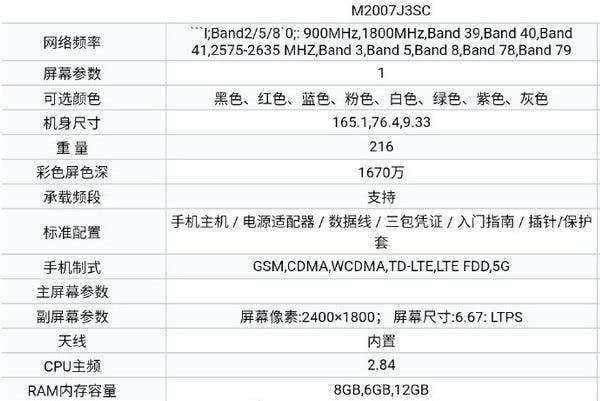 الجهاز الذي يحمل رقم الطراز M2007J3SC تم إدراجه على المنصة ببكاميرا بدقة 64 ميجابكسل ، مما يعني أنه قد يتم إعادة تسمية Mi 10T Pro باسم Redmi K30S Pro بكاميرا بدقة 108 ميجابكسل.