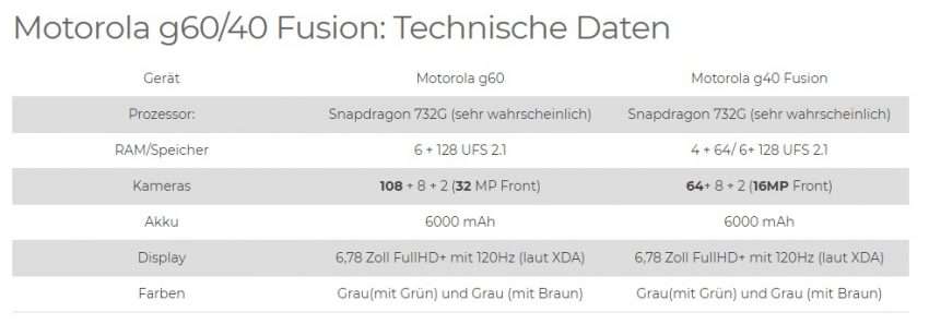 سيأتي موتو جي 60 مع بطارية ضخمة تبلغ سعتها 6000 مللي أمبير في الساعة للحصول على مقياس جيد ولديك متوسط جيد. سيتم تغيير اسم موتو جي 60 – G60 إلى G40 Fusion (رقم الطراز XT2147-1) في الهند والبرازيل.